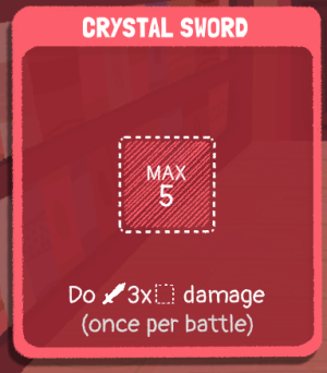 The Crystal Sword is a piece of equipment that does triple the damage of the dice placed within, but can only be used once per battle.