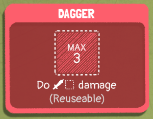 The Dagger is a piece of equipment for the Thief. It requires the Thief to use low-valued dice, but can be used as much as possible.